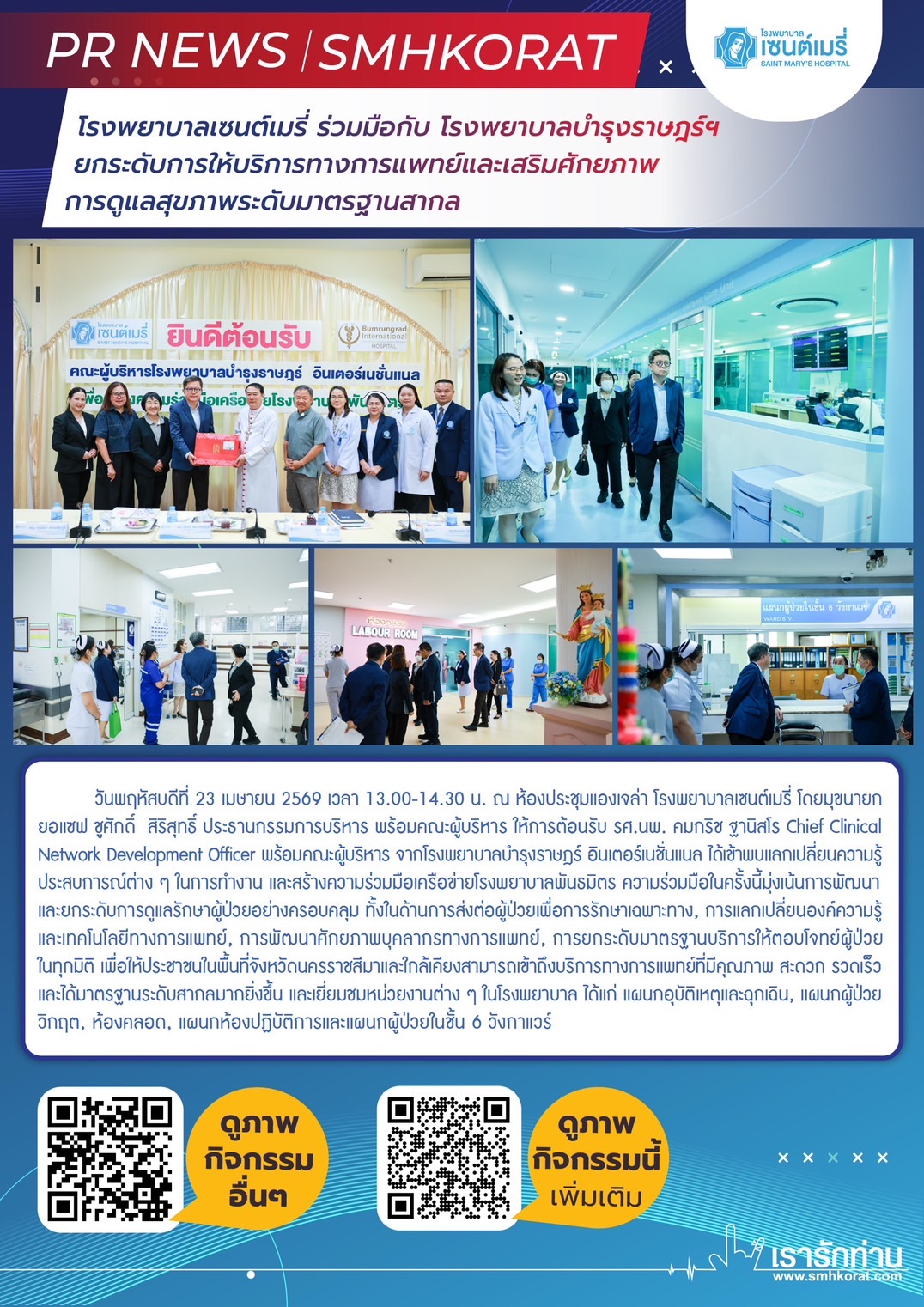 โรงพยาบาลเซนต์เมรี่ ร่วมมือกับโรงพยาบาลบำรุงราษฎร์ฯ ยกระดับการให้บริการทางการแพทย์และส่งเสริมศักยภาพการดูแลสุขภาพระดับมาตรฐานสากล