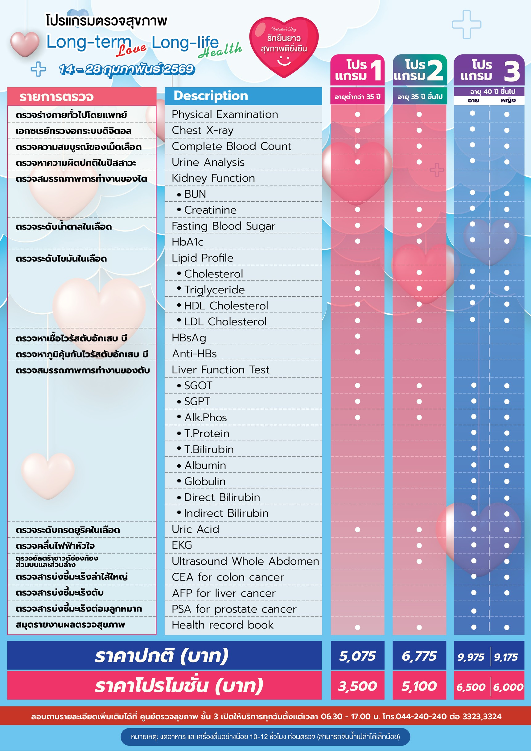 โปรแกรมตรวจสุขภาพ Valentine's Day รักยืนยาว สุขภาพดียั่งยืน