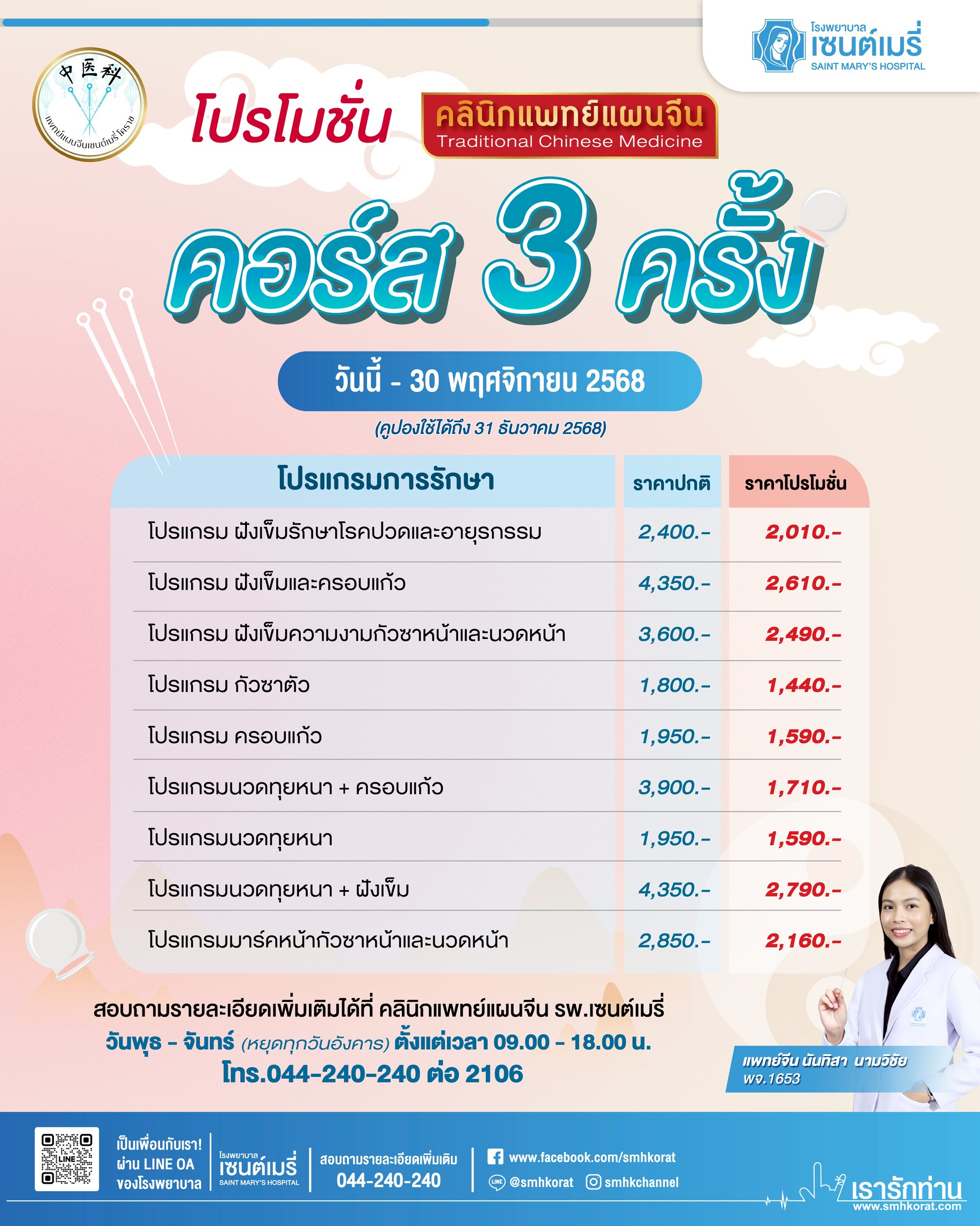 Promotion : คลินิกแพทย์แผนจีน คอร์ส 3 ครั้ง